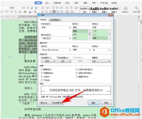 弹出字体的对话框,在最下方选择文本效果。
