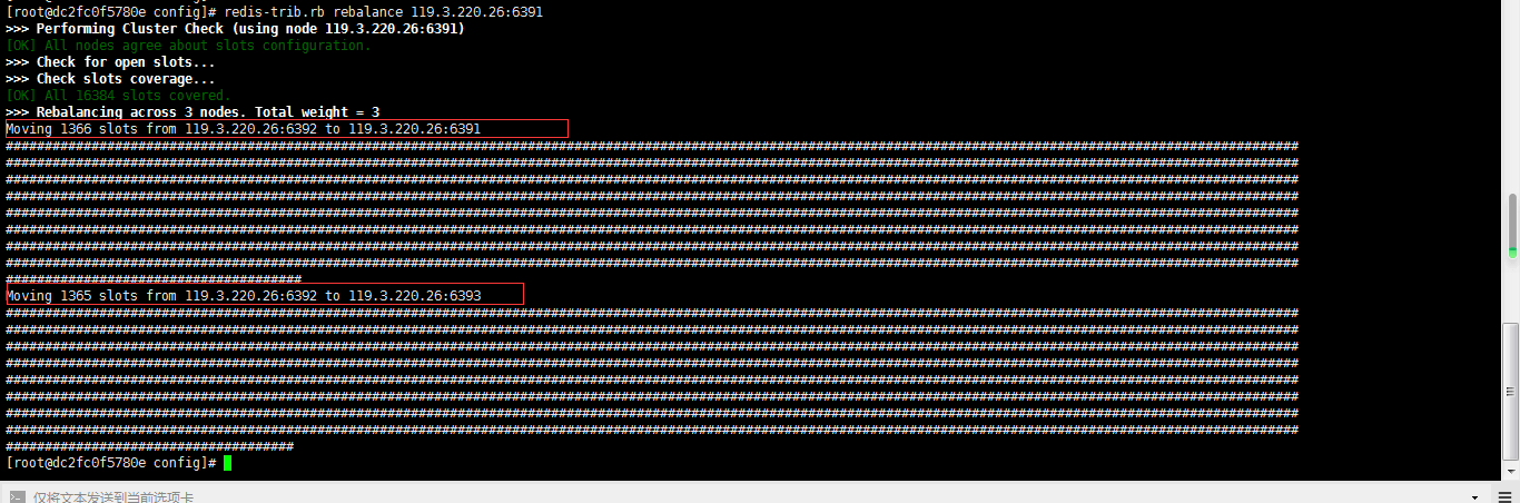 redis-trib.rb rebalance 119.3.220.26:6391 #再次强调。。6391可以换成6392、6393......等只要是集群中的任意一台redis节点即可