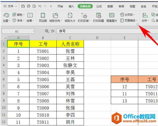 首先,我们单击工具栏页面布局下的页面快捷键选项,如下图所示。