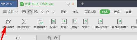 新建后我们在工具栏中选择公式-插入函数。
