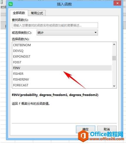 选择统计类函数后我们便可以选择FINV函数。