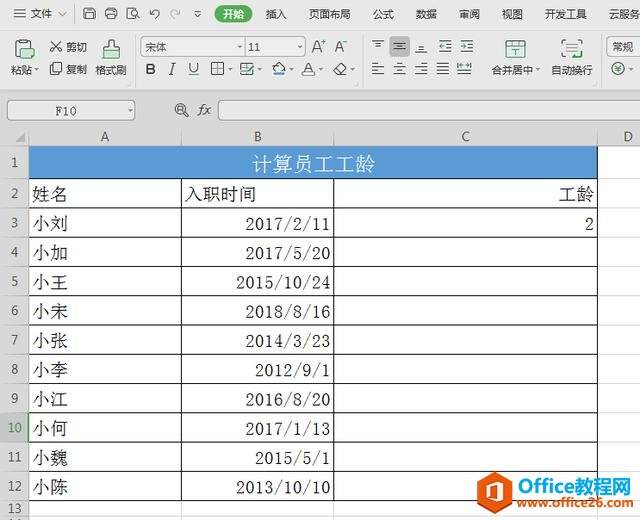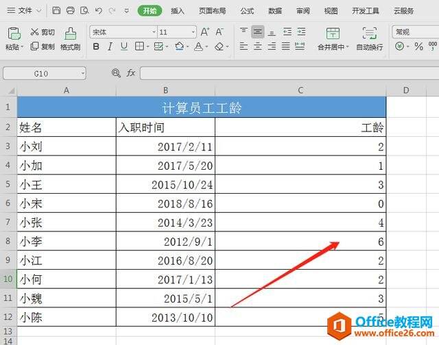 以上是为您收集整理的【WPS excel批量计算员工工龄】办公软件教程的全部内容,希望文章能够帮你了解办公软件教程WPS excel批量计算员工工龄。