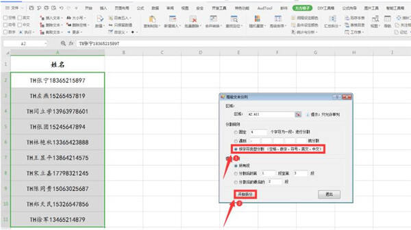 在弹出的对话框中,勾选【按字符类型分割】,再点击【开始拆分】: