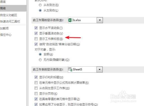 一直往下找,找到“此工作簿的显示选项”,下面有个“显示工作表标签”现在是没有勾中状态的。