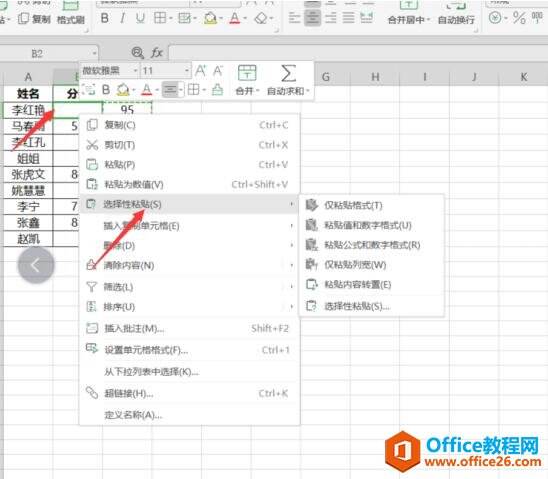 在第2列数据第一个数据单元格右击鼠标,点击选择“选择性粘贴”如图: