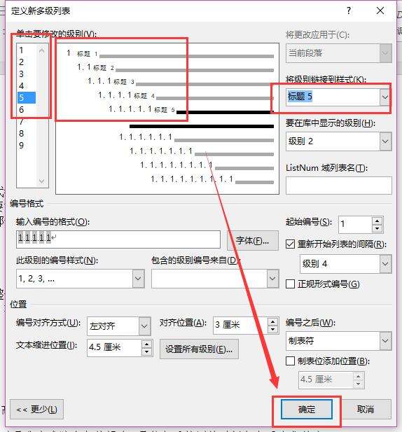 设置完成后,会发现级别中多出了对应的标题级别,点击【确定】按钮,