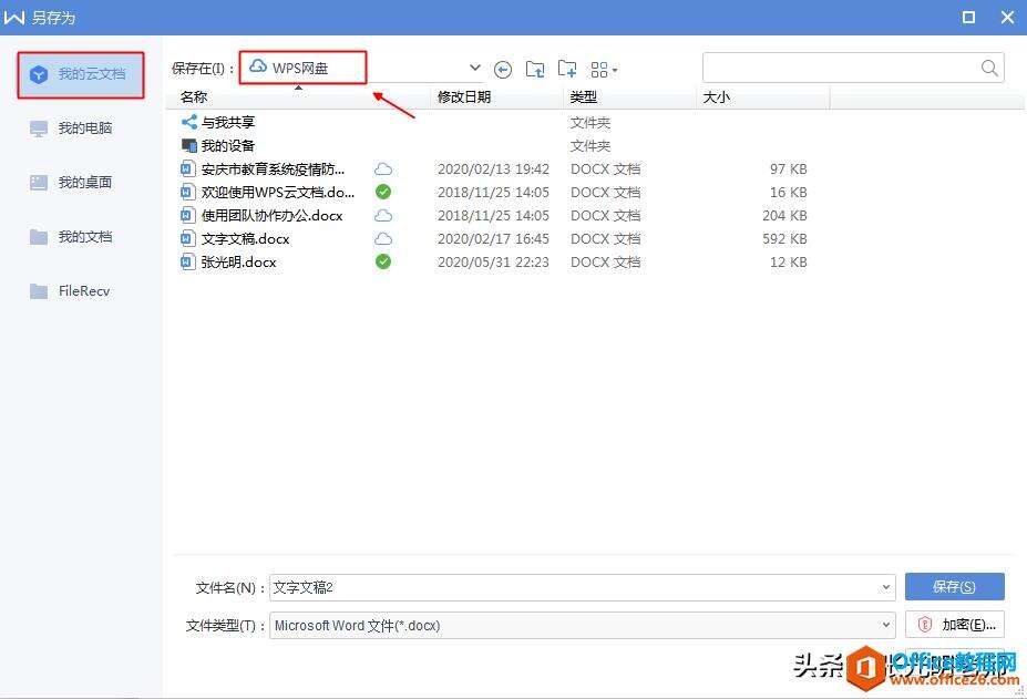 2.另存为WPS网盘,点击【确定】