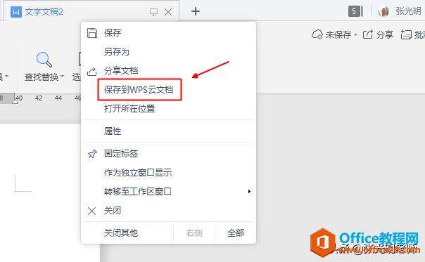 2.点击【保存到WPS云文档】