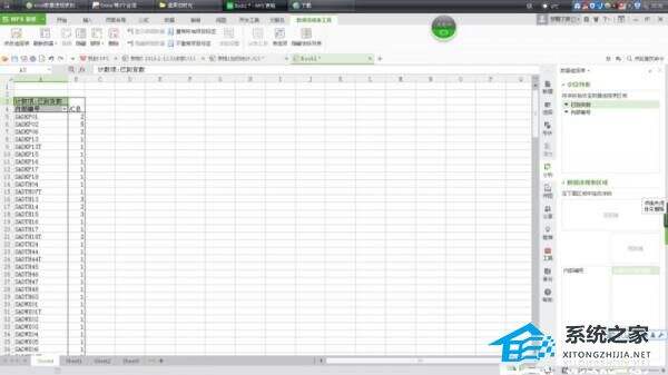 4、在sheet4的右边“字段列表“中,选择“内部编号”,拖到下方的行区域。
