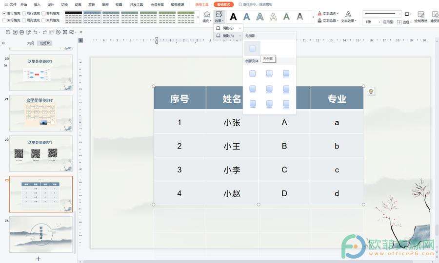 电脑版WPS演示文稿怎么删除表格的倒影效果
