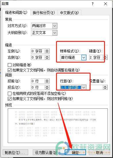 3.打开了段落窗口,用户将选项栏切换到缩进和间距选项,并点击间距板块中的特殊格式