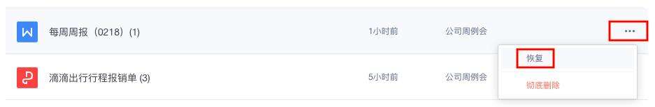 (2)找到要恢复的文档后,点击文档名右侧的「…」,再点击「恢复」: