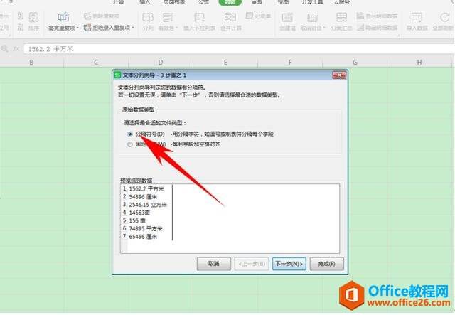 弹出文本分列想到对话框,单击分隔符号项,单击下一步。