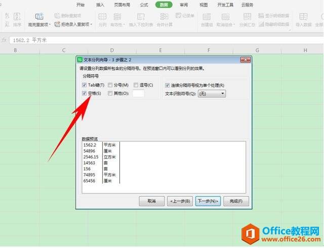 到文本分列向导的第二步,在分隔符号里选择空格,然后数据预览里就显示了,再次单击下一步。