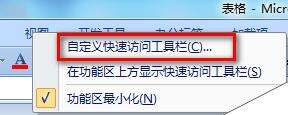 1、首先,在功能区上鼠标右键,选择【自定义快速访问工具栏】。