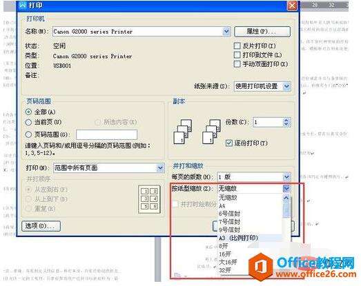 在正常情况下,我们使用的都是A4纸,如果使用其他规格的纸张进行打印,则需要在【按纸型缩放】中选择相应规格的纸张,再打印。