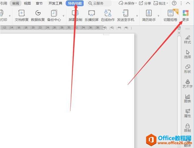 然后点击顶部工具栏的特色功能,在下方点击更多: