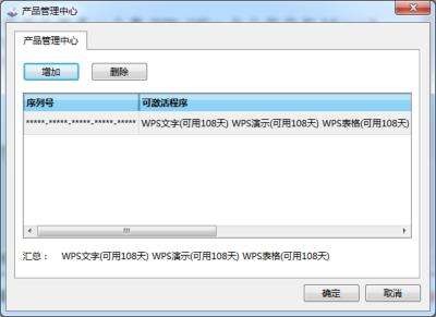 第四步:弹出『产品管理中心』界面后,点击『增加』功能,然后输入序列号『FLHAP-TEUGA-9MA3A-3TY3Q-V9EPD』,并点击『确定』,然后便可以查询到此序列号有效期;