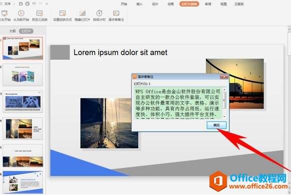 就弹出来演讲者备注的对话框了,而这个对话框只有制作者自己可以看到,放映过程中观众是看不到的
