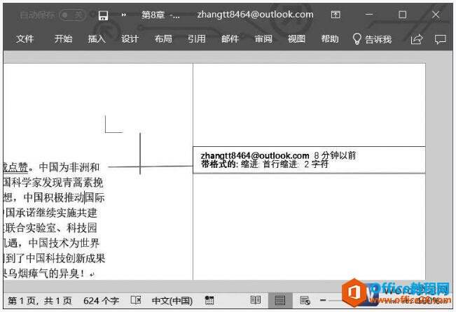 2、对文档进行编辑,文档中被修改的内容会以修订的方式显示,如图2所示。