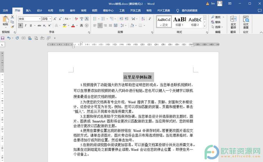 第一步:打开Word文档,可以看到标题内容设置了居中对齐,但是整体还是有点偏右,并没有在文档的正中间;