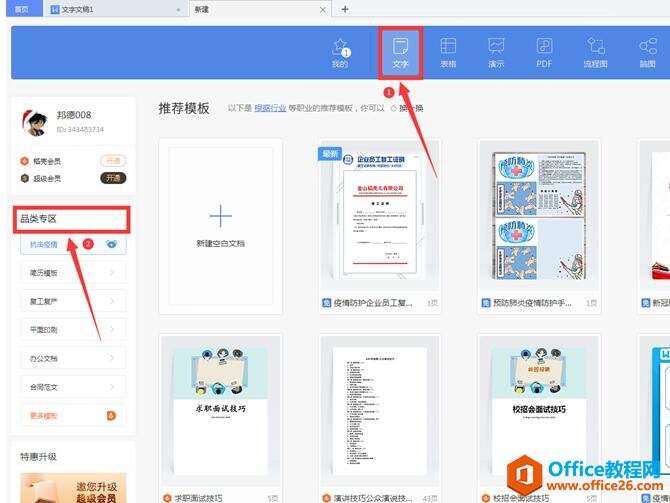 在转换的页面中,我们选择上面的【文字】,当然也可以选择其它类型,找到左边的“品类专区”: