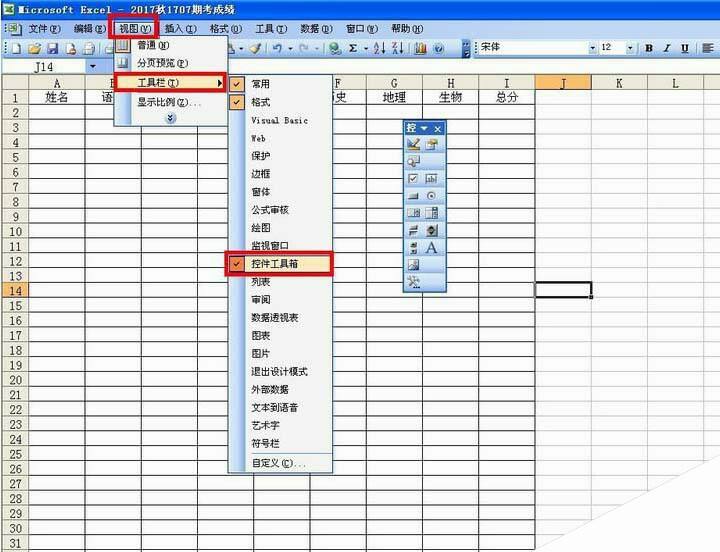 2、点击打开控件工具箱:点击视图——工具栏——控件工具箱,这时控件工具箱就会被勾选,并弹出控件工具箱。