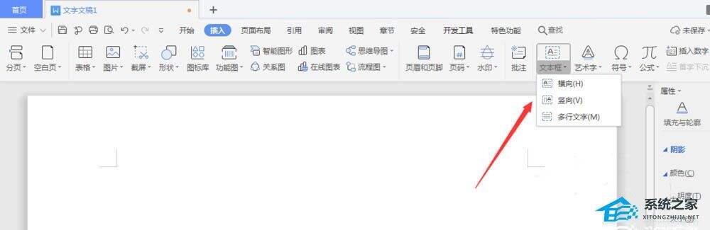 2、选中文本框然后打开填充属性,选择添加一个底色颜色。