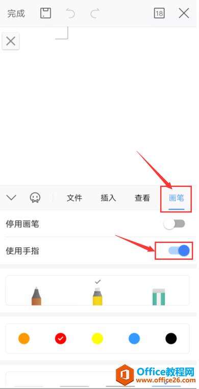 第四步,我们点击页面下方导航栏中的【画笔】,并且选择并点击【使用手指】: