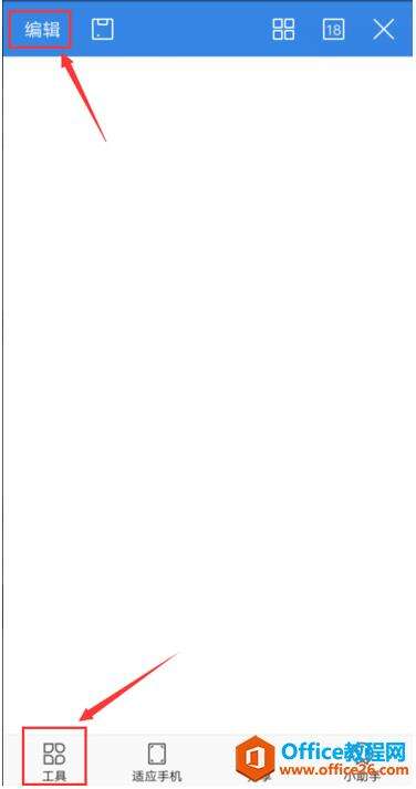 第三步,文档打开之后,点击页面左上方的【编辑】,然后点击左下角的四个小方格的【工具】: