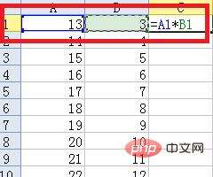 2、如图所示,C1=A1*B1,在“C1”下面第一个单元格里输入“=”。