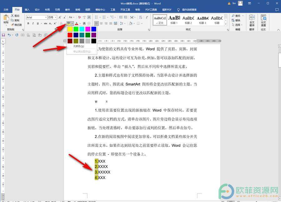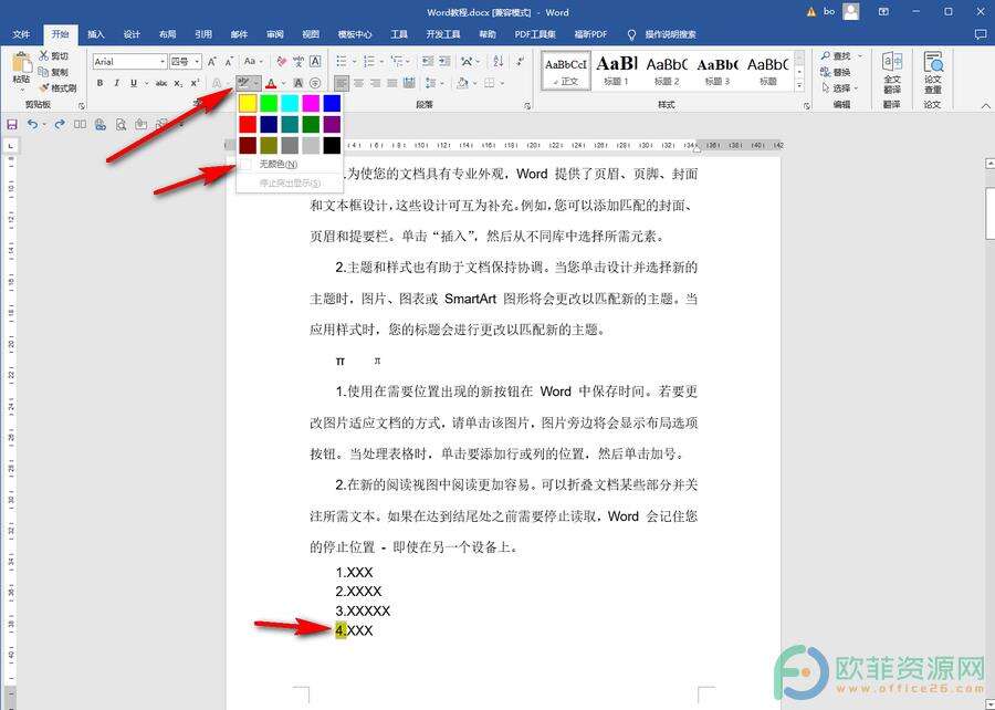 以上是为您收集整理的【Word自动编号上有颜色填充怎么去掉】办公软件教程的全部内容,希望文章能够帮你了解办公软件教程Word自动编号上有颜色填充怎么去掉。