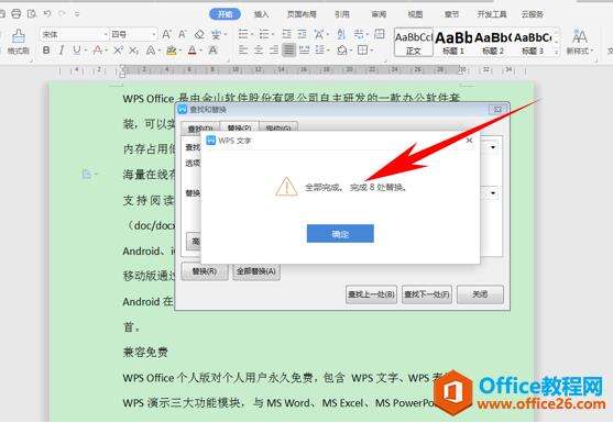 单击后我们发现弹出对话框已完成6处替换,我们看到文档当中的空行已经全部都没有了,但如果是有的文章空行不止一行,两段之间空了两行甚至更多则,需要重复上述操作即可。