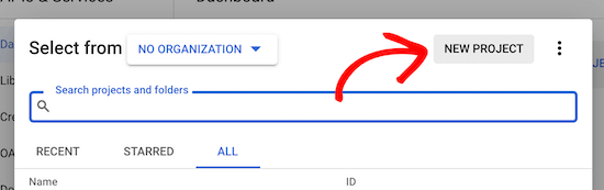 如果您已经创建了一个Google Developer项目,您的屏幕可能会略有不同,但是您仍然可以简单地单击同一个下拉箭头来创建一个新项目。