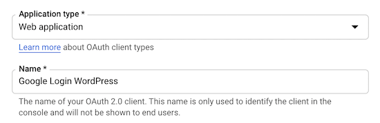 这将打开一个表单,您可以在其中命名web应用程序。该名称仅供您自己参考,不会向您的访问者显示。
