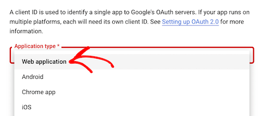 这将弹出一个下拉菜单。您需要选择OAuth客户端ID选项。
