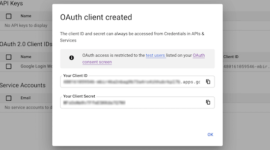 之后,点击“创建”按钮。这将弹出一个包含您的“客户ID”和“客户密码”的弹出窗口。你需要把这两个复制到你最喜欢的文本编辑器中。