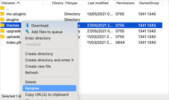 在那里,您会看到一个名为themes的文件夹。这是WordPress存储你的网站上安装的所有主题的地方。