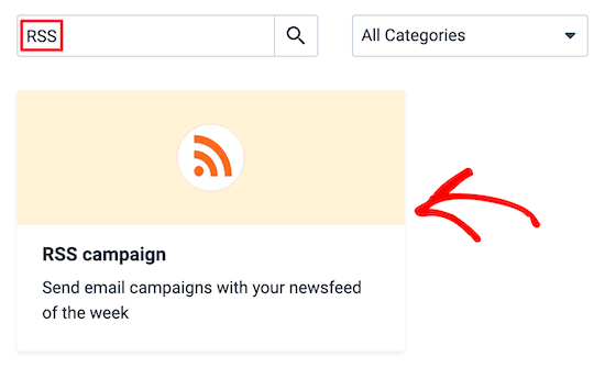 在搜索字段中输入“RSS”,您将看到RSS活动选项。