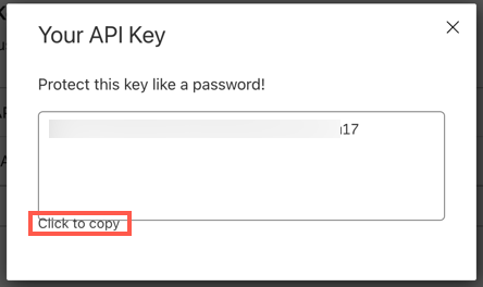 现在,你将获得你的全局API密钥,你可以复制并粘贴到WP Rocket的“全局API密钥”文本框中。