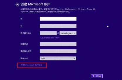 4、点击“创建一个新账户”后,点击左下方的“不使用Microsoft账户登录”,如图所示: