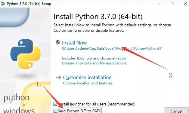 安装前,勾选 AddPython3.xto PATH选项。安装完毕之后,在Windows控制台可直接使用 python命令。