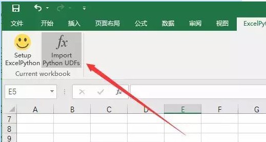 5.回到Excel中,点击 ExcelPython标签的 ImportPythonUDFs按钮