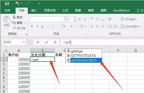 6.使用Python中定义的函数在输入框中输入 =getRandomBirth()