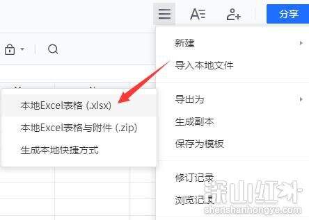 3、在下方给出的选项菜单中选择"导出为"中的"本地Excel表格(.xlsx)"。