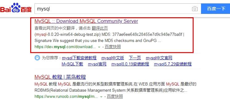 1、在百度搜索mysql,然后进入mysql官网,或直接输入mysql官网地址(https://dev.mysql.com/downloads/mysql/)
