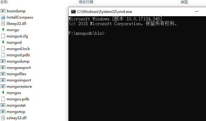 mongodb服务在mongodb根目录下的bin目录中启动。