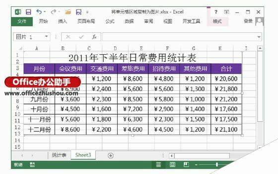 使用复制粘贴来将Excel单元格区域转换为图片的操作方法