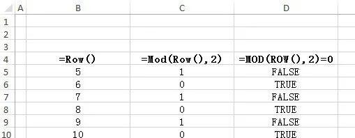 可以清楚地看到,公式中ROW()返回当前单元格所在行的行号;MOD(ROW(),2)返回行号除以2后的余数,要么是0(偶数行),要么是1(奇数行);将MOD(ROW(),2)与0相比较:MOD(ROW(),2)=0,返回值TRUE/FALSE。如果是TRUE,则应用设置的格式,即示例中的偶数行。