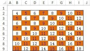 上面的示例每隔一行/列突出显示。如果要求每隔一个单元格突出显示,如下所示,那么如何编写公式呢?